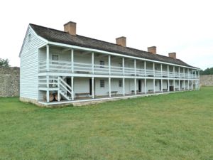 Revolutionary War (1775-1783)In 1777 the Continental Congress set up Fort Frederick as a prisoner of war camp for captured British and Hessian soldiers. After the end of the war, the fort was sold and converted to farmland. U.S. Civil War (1861-1865)During the U.S. Civil War the fort was garrisoned by troops from the 1st Maryland Infantry to protect portions of the B & O Railroad and the C & O Canal, both of which ran right by the fort. The only attack on the fort occurred on 25 Dec 1861 when Confederate raiders briefly skirmished with the garrison. Current StatusThe State of Maryland purchased the fort property in 1922 and began the development of the state park. In the 1930s the Civilian Conservation Corps (CCC) rebuilt the stone fort walls and excavated the original building foundations. In 1975 the two large enlisted barracks were rebuilt and fitted with displays and artifacts. The restored stone fort with two restored barracks buildings with period displays is now a part of the Fort Frederick State Park. A visitors center, store, and museum are located outside the walls.