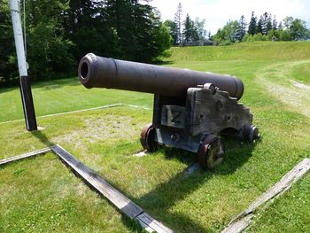 Current StatusEarthworks and one one of the brick magazines have been reconstructed and a single display cannon is in place. Part of Fort George State Memorial, Chastine, Hancock County, Maine