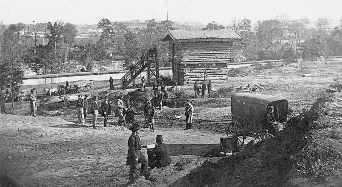 History of Fort HaggertyFort Haggerty was also one of 33 forts on the Virginia side of the Potomac River that made up an outer defense line for Washington DC known as the Arlington Line. Established in May 1861 as small outwork of Fort Corcoran with a perimeter of 128 yards and emplacements for 4 guns. Armament included four 24 pounder cannons. Fort Haggerty covered an area not visible from nearby Fort Corcoran. It was located to the rear of Fort Corcoran along the Chesapeake and Ohio canal route. The Potomac River Aqueduct Bridge connected the C & O Canal on the Washington side of the Potomac River with the Alexandria Canal on the Virginia side of the river. The bridge actually allowed the canal boats to cross the river and travel down the Virginia side to the Port of Alexandria. During the war the military converted the bridge and the canal into a wagon road that provided a supply road and a retreat route if necessary. Several forts guarded the approach to the bridge but Fort Haggerty and three small blockhouse were located very close to the Virginia bridgehead. A 17 May 1864 report from the Union Inspector of Artillery noted the following: "Fort Haggerty, Capt. Charles L. Smith commanding.–Garrison, one company Second New York Heavy Artillery–1 captain, 3 commissioned officers, 1 ordnance-sergeant, 164 men. Armament, four 24-pounder siege guns. Magazines, one; dry, well-packed, and serviceable. Ammunition, full supply; in a good condition. Implements, complete. Drill in artillery, fair. Drill in infantry, wants improving much. Discipline, indifferent. Garrison is more than necessary." The fort was abandoned in 1865 at the end of the war.