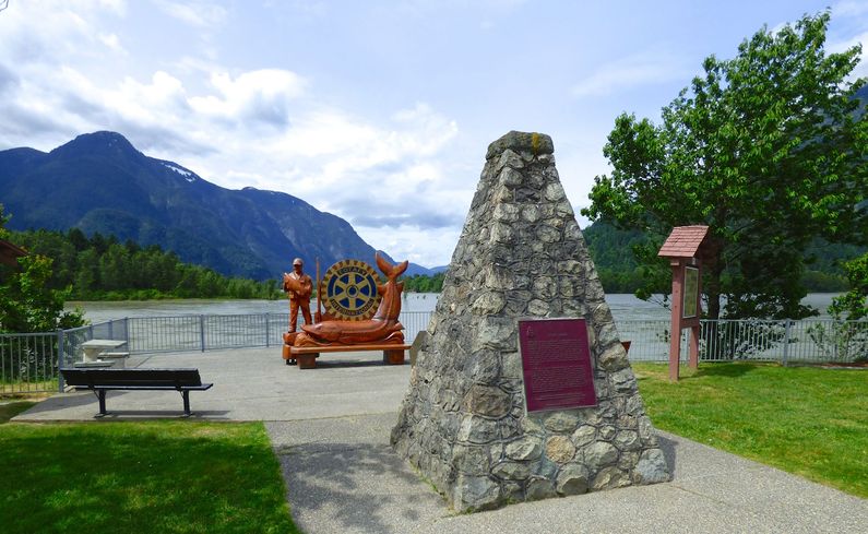 Fort Hope (1) (1848-1892) - A Hudson's Bay Company (HBC) trading post first established in 1848 at the present day town of Hope, British Columbia. Officially closed in 1892. History of Fort HopeEstablished in 1848 at the head of navigation on the Fraser River as a trading post and distribution center for supplies going to other posts by pack train. The British had lost the use of the Columbia River to supply inland posts in the 1846 boundary settlement with the Americans and the Fraser River became the new supply route. Trade goods and supplies arrived by seagoing ships at Fort Langley just upriver from present day Vancouver. Supplies were then shipped from Fort Langley upriver to Fort Hope for distribution to inland posts like Fort Kamloops. An HBC fort had also been built further upriver as Fort Yale but that location proved to be unsatisfactory and Fort Yale was soon abandoned in favor of Fort Hope (1). The HBC controlled the fur trade in this region until the 1858 discovery of gold in the Fraser River. This discovery eliminated the fur trade and the HBC became the provisioner for the mining activities and only law in the territory. The fort officially closed in 1892 Current StatusMonuments Board of Canada plaque mounted on a rock cairn with a view of the Fraser River. No remains of the fort.