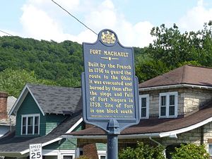 Fort Machault (1755-1759) - A French, French & Indian War fortification established in 1755 in present day Franklin, Venango County, Pennsylvania. Abandoned in 1759. French & Indian War (1754-1763)In 1753-54, the French sought to gain control of the Ohio River Valley by building forts along a route from Lake Erie to the forks of the Ohio. The forts were strategically placed along the water route from Lake Erie to the Ohio River beginning at Fort Presque Isle and the some 12 miles of overland portage to Fort le Boeuf. The route then goes down French Creek to Fort Machault where French Creek meets the Allegheny River and from there to Fort Duquesne (1) at the head of the Ohio River. When the French started this line of forts the Lieutenant Governor of Virginia, Robert Dinwiddie, sent 21 year old George Washington all the way to Fort le Boeuf to demand the French leave. The French declined and the stage was set for the French & Indian War. The French completed the four forts and held the territory until the advance of British General John Forbes in November 1758 caused the French to abandon and destroy Fort Duquesne (1) and fall back along the line of remaining forts. In July 1759 the three remaining forts were destroyed and the French left. The British took over the abandoned and destroyed Fort Duquesne (1) and began building Mercer's Fort and Fort Pitt (1) over the ruins. The departure of the French forces in July 1759 allowed the British to occupy the three remaining French fort sites in 1760 and rebuild the destroyed fortifications. The British occupied all four of the fort sites until Pontiac's War in 1763. The hostile Indians manage to take and destroy all three of the upper forts in 1763 and they laid siege to Fort Pitt (1) but were unable to take it.