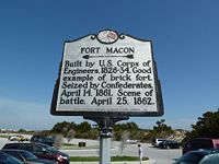 U.S. Civil War (1861-1865)The fort was in the hands of a caretaker when the U.S. Civil War began on 12 Apr 1861. The North Carolina Militia seized control of the fort two days later and began upgrading the armament in anticipation of a Union attack. The fort remained in Confederate hands for a year before Union forces under Brigadier General John G. Parke mounted a siege. The siege included land base gun and mortar batteries south of the fort, a fleet of gunboats offshore and floating batteries in the sound. Some of the Union land batteries were using the new rifled cannon and their fire proved too much for the masonry fort. When the fort's magazines became exposed and vulnerable, the Confederate fort commander, Colonel Moses J. White, surrendered on 26 Apr 1862. The fort remained in Union hands for the duration of the war. After the war, the fort became a Federal prison for both civilian and military prisoners. In 1877 the fort was placed back in caretaker status.