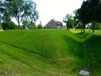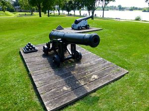 Current StatusFort Malden National Historic Site in Amherstburg, Essex County, Ontario, Canada. Earthworks and a restored stone barracks. Period cannons and carriages on display.