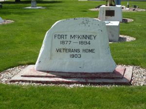 Fort McKinney (1878-1894) - Fort McKinney was established in 1878 and named after Lieutenant John McKinney (Cullum 2390), 4th U.S. Cavalry, who was killed in the nearby Dull Knife battle of 1876. The fort was first established south of Fort Reno and later moved to a site west of Buffalo, in Johnson County, Wyoming. The fort's primary purpose was to see that the recently hostile Sioux and Cheyenne tribes did not go back on the warpath and to keep the Crow, Arapahoe, and Shoshoni tribes and the settlers at peace with each other. HistoryDuring the Johnson County War of 1892, troops at the fort received orders from President Benjamin Harrison to stop the fighting and escort big cattlemen and their hired Texas gunslingers safely out of the area before the irate citizens of Buffalo could lynch them. By 1894, the fort was no longer needed and it was closed. Current StatusFollowing its abandonment, some buildings of the post were disposed of by the federal government, and the remainder turned over along with a considerable tract of land to the State of Wyoming in 1903. Subsequent to that change of ownership, most of the rest of the buildings were removed or dismantled. Today, it is the site of the Wyoming Soldiers and Sailors Home. The old fort hospital, moved from its original location, is today the visitors' house of the home. All that otherwise remains of the post are old mule and cavalry stables, the latter now used as a garage, as well as some cellar ruins of other buildings.