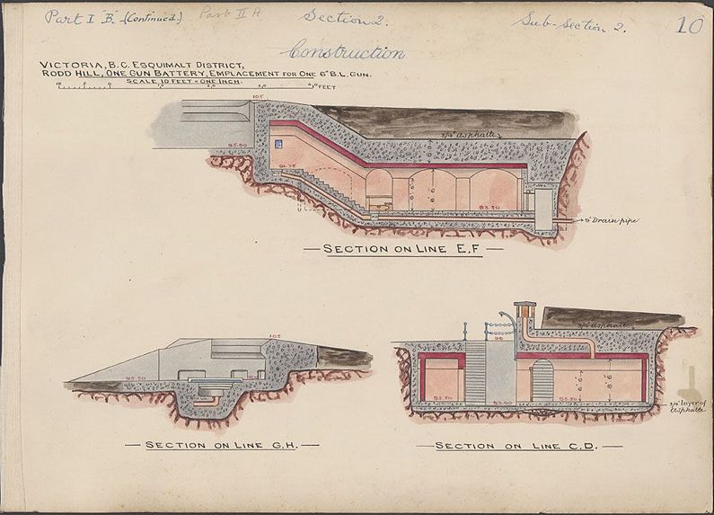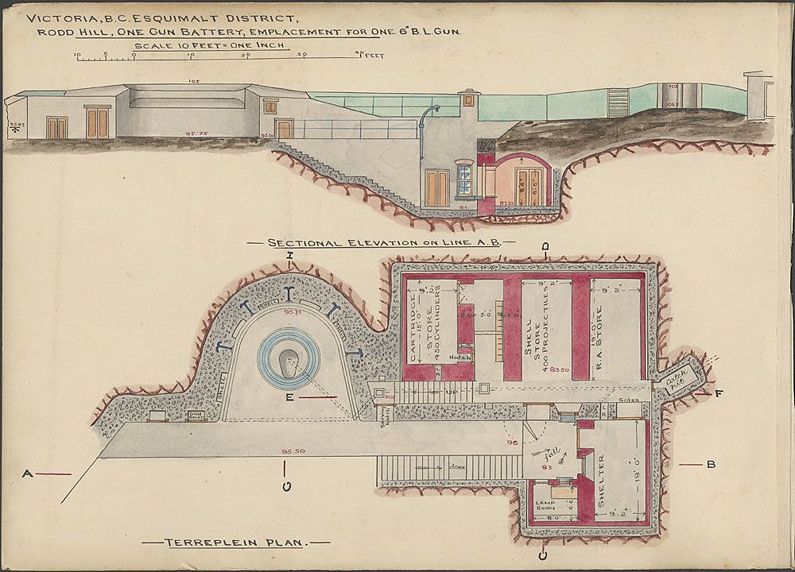 Fort Rodd Hill Upper Battery (1895-1941) - Fort Rodd Hill Upper Battery was a reinforced concrete six inch coastal gun battery on Fort Rodd Hill in present day Victoria, Vancouver Island, British Columbia, Canada. Deactivated in 1941. Endicott Period (1890-1910)