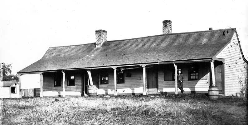 The post evolved into a look-out post for deserters. A new barracks was built in about 1792 for one officer and 35 men. In 1798 the barracks was shown as being in tolerable repair and able to barracks one officer and 35 men. A guardhouse was built sometime before 1827 to guard the bridge crossing. Pictures show fort buildings still standing in 1878 but about 1912 they were destroyed by fire. Deactivated sometime in the late 1800s. Current StatusNo remains. Archelogical artifacts recovered from the site are located at the nearby Joseph Scott Manor House located at 15 Fort Sackville Road. Operated by the Fort Sackville Foundation.