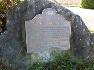 Fort Ter-Waw (1857-1862) - A U.S. Army post established in 1857 during the California Gold Rush by 1st Lt. George Crook, 4th U.S. Infantry, in present day Klamath Glen, Del Norte County, California. Abandoned for Camp Lincoln in 1862. Also known as Fort Terwer. HistoryA U.S. Army post established on 12 Oct 1857 during the California Gold Rush by 1st Lt. George Crook, 4th U.S. Infantry. The post was sited in a valley along the Klamath River about six miles above its mouth at the present day town of Klamath Glen. The post was evacuated in June 1861 but reoccupied in August 1861. In the winter of 1861-1862 it was flooded four times and the decision was taken to remove the garrison to Camp Lincoln near Crescent City in 1862. Abandoned 10 Jun 1862. Current StatusMarker only in Klamath Glen, Del Norte County, California