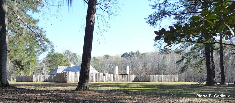 Must See! A reconstructed and animated fort of 1751 can be visited in the Fort Toulouse – Fort Jackson State Historic Site, Elmore County, Alabama. You can see few buildings with costumed people acting as French garrison. There is a Creek house beside the reconstructed fort. Moat and ruins of Fort Jackson can be seen at the very site. A prehistoric Mississippian Indian Mound is seen east of the ruins.