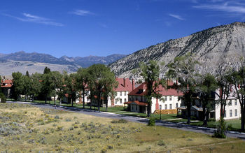 HistoryIn 1886 men from Company M, 1st U.S. Cavalry, Fort Custer, Montana Territory under Captain Moses Harris came to Yellowstone to begin what would be more than 30 years of military presence in Yellowstone. When Company M arrived in August 1886, they lived in temporary frame buildings at Camp Sheridan, established at the foot of the Mammoth Hot Springs Terraces. After enduring five cold, harsh winters, the cavalry realized there was no end in sight to this assignment. Therefore, in 1890, Congress appropriated $50,000 for a permanent post. The first buildings of Fort Yellowstone were finished by late 1891. As more troops were needed, more buildings were constructed: officers' quarters, guardhouse, headquarters, barracks for enlisted men, stables for their horses, and non-commissioned officers' quarters. In 1909, Scottish masons began constructing sandstone buildings here - among them the Albright Visitor Center (then the Bachelor Officers' Quarters) and the administration building (then a two-troop barracks for 200 men). The Chapel, the final building constructed during the Army's tenure, was also constructed of native sandstone. The stone from these buildings was obtained from a local quarry between the Gardner River and the Mammoth Campground. In 1910, at the height of the Army's presence in Yellowstone, there were 324 soldiers stationed here - plus some families and numerous civilian employees. These troops staffed not only Fort Yellowstone but were stationed throughout the park in small details at various outposts. --from National Park Service--