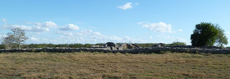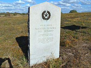 Mission Nuestra Senora del Rosario (1754-1831) - A fortified Spanish mission established in 1754 by Franciscan missionaries in present day Goliad County, Texas. Secularized and abandoned in 1831. HistoryThe mission was established in November 1754 by Father Juan de Dios Camberos in an effort to provide an alternative for Indian tribes who could not assimilate at other missions. The initial attempts at agriculture were not successful and the mission turn to ranching to support the mission. The ranching operation was successful and the mission herd grew to some 30,000 head in 1780. Indian problems caused the mission to be abandoned in 1781 but it was reopened in 1789. The Nuestra Senora del Refugio Mission was established in 1792 and in 1797 all the Cocos Indians at Mission Rosario went to Mission Refugio. In 1804 all of the remaining Indians went to Mission Refugio and Mission Rosario was combined with Mission Refugio 1807. Mission Rosario was secularized in 1831. Current StatusRuins only at the site. The site given to Goliad State Park Commission by W. J. O'Connor in 1935. Not open to the public but is viewable through a chain link fence.