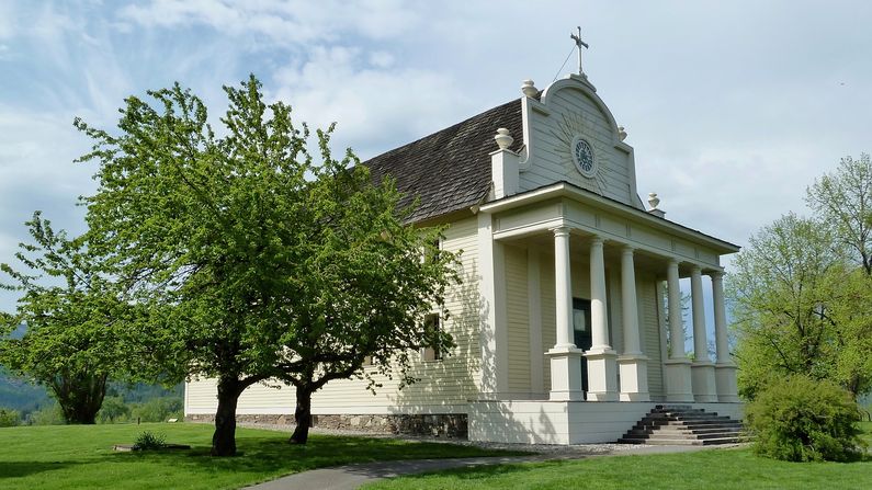 Mission of the Sacred Heart (1842-1877) - A Catholic mission established in 1842 by Jesuit Father Nicolas Point on the north shore of Lake Coeur d'Alene. Named Mission of the Sacred Heart. Also known as Cataldo Mission. HistoryEstablished in 1842 as a Catholic Mission to the Coeur d'Alene Indians. Jesuit Father Nicolas Point conducted the first service on 2 Dec 1842 on the north shore of Lake Coeur d'Alene. He first established the mission at the winter camp of the Coeur d'Alene Indians where the Spokane River flows out of the lake and later moved it to their spring camp by the St. Joseph River. The riverside location was prone to flooding so the mission was moved in 1846 to a new site just west of modern day Cataldo. The new mission was named Mission of the Sacred Heart and initially consisted of a temporary chapel and three log cabins. A large permanent church was designed in 1848 and completed in 1855. Mission Buildings included a large barn, a flour mill, a dairy, and two hundred acres of cultivated farmland. Anthony Ravalli, a Jesuit missionary from Ferrara, Italy, oversaw the construction of a new spectacular church overlooking the Coeur d'Alene Valley with skilled Coeur d'Alene craftsmen. Ravalli used Italian designs that reflected then popular styles in Italy. His church is now the oldest surviving structure in Idaho and is still a very imposing structure In 1877, a new location for the Coeur d'Alene Mission of the Sacred Heart was developed farther west, inside the Coeur d'Alene Reservation at Desmet. Current StatusMust See! Part of the Old Mission Idaho Sate Park in Kootenai County, Idaho. A pilgrimage by the Coeur d'Alenes to the old mission church and religious services are still conducted each August 15, on the Feast of the Assumption.