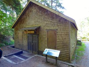Current StatusFour of the original buildings (repurposed) remain including the enlisted mess, a searchlight shelter, the searchlight power house and a barracks. The remaining concrete gun mount and depression range finder pedestal are next to the lighthouse but are not accessible to the public. Two of the buildings are also in the no access area. Public auto access ends at a parking lot on Beacon Lane where a trail begins that leads down to a point just above the lighthouse. This is the point where public access ends. There is also an overlook viewpoint on a large rock formation on a side trail.