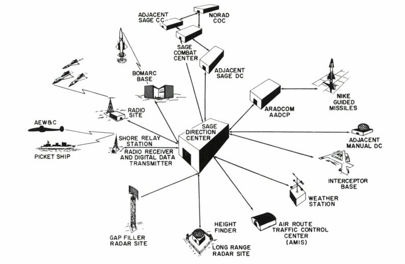 SAGE System (1957-1983) - The Semi-Automatic Ground Environment (SAGE) System was a United States Air Defense System designed to protect the United States against nuclear attack by Soviet bombers. The system was designed and put into place starting in 1957 before the ICBM threat materialized and kept in place to manage any air breathing threat until 1983.