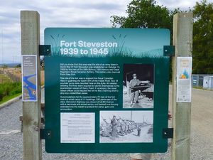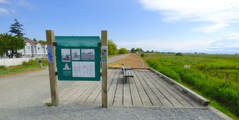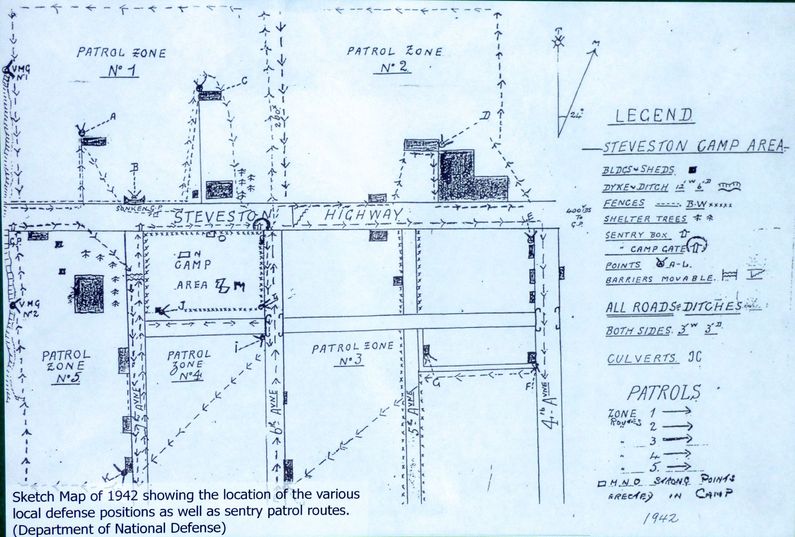 Steveston Battery (1939-1943) - Steveston Battery was a Canadian 18 pounder coastal gun battery near Steveston, British Columbia, Canada. Deactivated in 1943. Also Known as Fort Steveston. World War II (1939-1945)Part of the Harbor Defense of Vancouver in British Columbia. Established on 13 Oct 1939 as a World War II coastal defense battery with two field emplaced 18 pounder QF MK 1 guns to guard the mouth of the Fraser River at Steveston and provide examination services. The post was garrisoned by a detachment of troops from the 58th Battery, 15th Coast Artillery Brigade, RCA, at Point Grey Battery. One of the 18 pounders was replaced in the spring of 1943 with two tractor drawn 25 pounders. One of the 25 pounders was withdrawn in October 1943 and the remaining two guns were placed in caretaker status at the end of 1943. Supporting the gun positions was a small camp that accommodated the some 75 personnel manning the guns and supporting the battery. The area of the camp was bounded on west by the dyke, on the east by 4th Street along both sides of Steveston Highway. Eleven buildings were included in the reservation.