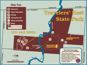 HistoryA Lewis and Clark Expedition Camp was established on 9 Sep 1805 and occupied through 11 Sep 1805 near present-day Lolo, Missoula County, Montana. The expedition camped here for two days before crossing the Bitterroot Mountains over the Lolo Trail. On the return trip, Lewis and Clark again stopped for two days, 30 Jun 1806 through 3 Jul 1806. It was at this point that Lewis and Clark separated, intending to map different routes and rejoin near present-day Sanish, North Dakota. Clark's group returned to Camp Fortunate to recover cached items. His party split into two groups at Three Forks, one of which continued down the Missouri to rejoin Lewis near Maria's River Camp. Clark and the second group traveled overland and then down the Yellowstone River to rejoin Lewis at the Missouri River. Current StatusNow part of Travelers' Rest State Park. Archeological investigations have confirmed the location of Lewis & Clarks' campsite at Travelers Rest making it perhaps the only confirmed campsite location. The Visitor Center has some excellent displays and information. The actual site has little to see, just a set of place markers and a few interpretive panels but the setting is impressive with the West Fork of Lolo Creek running through the site.