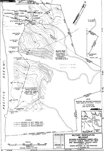 Wildcat Military Reservation (1940-1946) - A 201 acre U.S. Army Military Reservation established in 1940 during World War II near Olema in Marin County, California. Abandoned as a military reservation circa 1946.