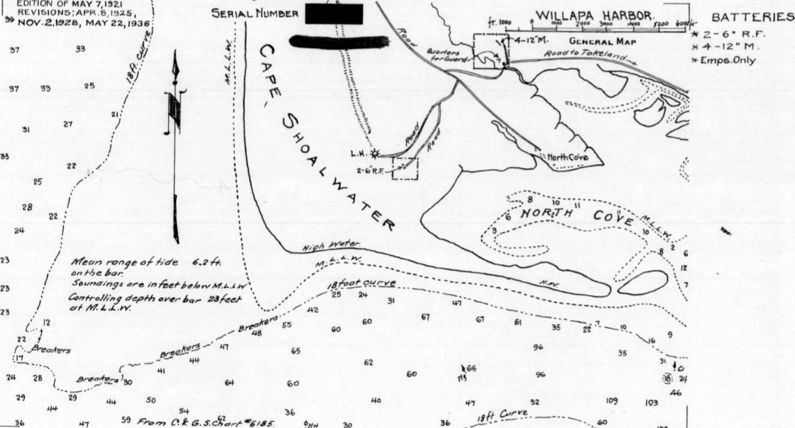 Willapa Military Reservation (1918-1932) - A World War I Coastal Military Reservation first established in 1918, Pacific County, Washington. Abandoned in 1932. World War I (1917-1918)Part of the Harbor Defense of Willapa Harbor. Two temporary batteries were built with only concrete pads for two 6" pedestal mounted rifles and four 12" mortars on two separate plots of land. The 6" guns came from Fort Stevens, Battery Freeman and were mounted in 1919 but the mortars were not furnished. On 26 Oct 1921 the Coast Defenses of the Columbia were placed in caretaker status and a caretaker detachment of six men was to care for Fort Canby, Fort Columbia, Grays Harbor, and Willapa Bay. One caretaker was placed at both Willapa Military Reservation and Grays Harbor Military Reservation. The caretaker at Willapa Bay was relieved about 1930. The 6" guns were transferred on 28 Aug 1932 to Fort Worden for future use in Battery Tolles-B.