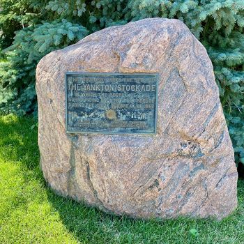 No remains of the stockade but a number of markers identify the north, east, and west wall locations. The Yankton County Government Center at Broadway Ave and Third St. has a plaque mounted on a boulder identifying the location of the stockade and a second plaque lists all the members of the defenders in Company A of the Dakota Militia. | No remains of the stockade but a number of markers identify the north, east, and west wall locations. The Yankton County Government Center at Broadway Ave and Third St. has a plaque mounted on a boulder identifying the location of the stockade and a second plaque lists all the members of the defenders in Company A of the Dakota Militia. | ||