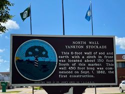|width="50%"|[[ | |width="50%"|[[File:Yankton Stockade Marker.jpeg|350px|thumb|right|Yankton Stockade Marker at Broadway Ave. and Third St,]] | ||