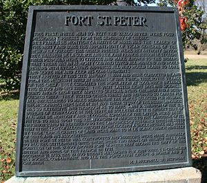 Fort St. Peter (1719-1729) - A French post established in 1719 by four missionary priests from the Seminary of Quebec. Located on present day Snyder's Bluff in Warren County, Mississippi. The post was abandoned in 1729 after all but four of the inhabitants were massacred by Yazoo Indians. Also known as Fort San Pierre, Fort St. Pierre des Yazous, Fort St. Claude. U.S. Civil War Confederate Fort Snyder was built on the site in 1862. HistoryThis French post was established in 1719 by four missionary priests from the Seminary of Quebec, their leader was the Reverend Francis de Montigny. The post was located on present day Snyder's Bluff in Warren County, Mississippi. The fort and the farms established by the settlers expanded until there were a total of 16 farms associated with the post. The post was abandoned after all but four of the inhabitants were massacred by Yazoo Indians on 31 Dec 1729. Current StatusMarker only on Snyder's Bluff, Warren County, Mississippi.