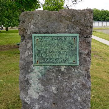 |width="50%"|[[ | |width="50%"|[[File:Camp Van Schaick Marker.jpg|350px|thumb|left|Camp Van Schaick Roadside Marker.]] | ||