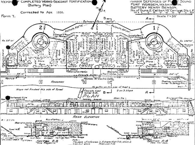 Battery Benson (1904-1943) - Battery Benson is a concrete Endicott Period Battery located on Fort Worden, Washington. The Battery was begun in 1904, completed in 1907 and transfered to the Coastal Artillery for use 24 Apr 1908 at a total cost of $142,500. The guns were dismounted in 1943 during World War II.