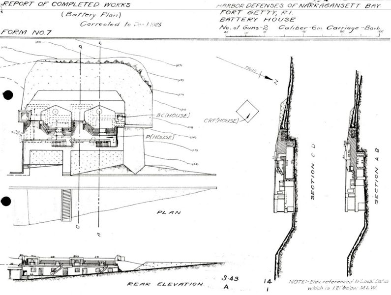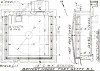 Battery House (1) (1910-1942) - Battery House (1) was a reinforced concrete, Endicott Period coastal gun battery on Fort Getty, Newport County, Rhode Island. The battery was named in G.O. 194, 27 Dec 1904, after Bvt. Brigadier General James House, U.S. Army (Colonel 1st U.S. Artillery), who served from 1799 to 1834, and who died 17 Nov 1834. Battery construction started in September 1901, was completed in February 1905 and transferred to the Coast Artillery for use 7 Jun 1910 at a cost of $ 35,282.02. Moved to Fort Varnum in 1942. Endicott PeriodPart of the Harbor Defense of Narragansett Bay. Originally built as an Endicott Period concrete coastal gun battery with two 6" M1900 guns mounted on M1900 Barbette carriages. This was a two story battery with the guns on the upper level and the magazines below. Shells were moved from magazine level to the gun loading platform by electric back delivery Hodges shell hoists. Electric power was furnished from the power plant at Battery Tousard.