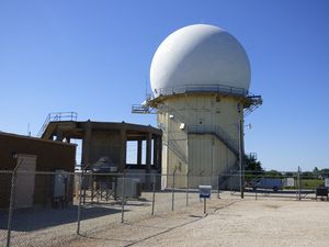 |width="50%"| | |width="50%"|[[File:Hutchinson AFS Search Twr.jpg|300px|thumb|left|Former Hutchinson AFS Search Radar Tower now FAA Operated.]] | ||