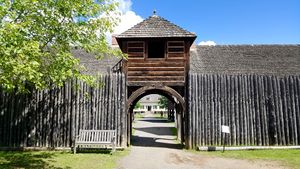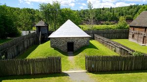 Fort William (10) (1803-1883) - A fur trading post established in 1803 by the North West Company (NWC) as Fort Kaministiquia near present-day Thunder Bay, Ontario. Renamed Fort William in 1807 after William McGillivray, chief director of the NWC (1804-1821). Captured by employees of the rival Hudson's Bay Company (HBC) under Lord Selkirk in 1816, it was briefly occupied until 1817. The fort passed under the control of the HBC when it absorbed the NWC in 1821. The post was officially closed in 1883 and the site was obliterated in the 1890's by the construction of the Canadian Pacific Railway yards at present-day Thunder Bay. History of Fort WilliamEstablished in 1803 by the North West Company (NWC) as Fort Kaministiquia. The fort was renamed Fort William in 1807 after William McGillivray, chief director of the NWC. The fort operated as the district headquarters of the NWC and traded with trappers and the native population for furs. The trade goods came from Montreal in large canoes paddled by Canadian Voyagers. The traded furs were packaged and compressed into 90-pound bundles and returned to Montreal by the Voyagers. Ross Cox, an early-19c HBC clerk and trader, describes it: "The buildings at Fort William consist of a large house in which the dining-hall is situated, and in which the gentleman in charge resides; the council house; a range of snug buildings for the Doctor's residence; extensive stores for the merchandise and furs; a forge; various workshops, with apartments for the mechanics, a number of whom are always stationed here. There is also a prison for refractory voyageurs. The whole is surrounded by wooden fortifications, flanked by bastions, and is sufficiently strong to withstand any attack from the natives. Outside the fort is a shipyard, in which the Company's vessels on the lake are built and repaired. The kitchen-garden is well stocked, and there are extensive fields of Indian corn and potatoes. There are also several head of cattle, with sheep, hogs, poultry, &c., and a few horses for domestic use." This early era of the fur trade was very profitable and the post flourished. The rival Hudson's Bay Company established the Point Meuron HBC Post nearby. In August 1816, after clashes between the two posts, HBC employees under Lord Selkirk captured and occupied Fort William until 1817. The fort was returned to NWC control in 1817 but returned to HBC control when the NWC merged into the HBC in 1821. The post continued to operate using Voyagers to transport the trade goods and furs to Montreal until the change of fashion and the depletion of the fur animals reduced the trade. The arrival of the railroads in the 1870s brought an end to the Voyager system. Fort William was officially closed in 1883 and the site was obliterated in the 1890's by the construction of the Canadian Pacific Railway yards at present-day Thunder Bay. The powder magazine was the last of the buildings to be destroyed in 1902. Current StatusAn absolutely Must See! Now part of Fort William Historical Park. This is a complete restoration of the fort as it was during the North West Company era but located on a different site. The fort replicates the time of the annual gathering of Scots traders, French Canadian Voyageurs and native fur trappers. Fort William was the largest post of its kind in North America and the annual summer rendezvous attracted over 1,000 traders, trappers and voyageurs. Magnificent reconstructions of nearly all the buildings that would have been found on this post. Most of the buildings are open to visitors and contain the things that would have been in place in that era. Costumed interpreters explain the times and the contents in character. The interpretation of the Canadian Voyageurs includes the construction of the canoes, trapping the furs, preparing the furs and packaging the furs into compressed 90-pound bundles. The interpretation does not stop there and includes the final step of organizing the bundles into canoe loads; the warehouse has several canoe loads ready for shipment and that really illustrates what a large operation this was. Several markers and a monument are located around Thunder Bay.