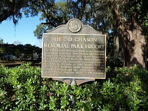 Part of Chason City Park, Decatur County, Georgia. A state marker is located on the North side of Highway 27 and North Crawford Street. Chason City Park contains the site of the fort and two upright cannons that once were located at the site of Fort Scott (3).