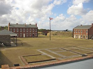 Built as a masonry Third System fort with five sides and bastions located on each corner. Designed to mount 70 pieces of heavy ordnance, it was never fully armed.