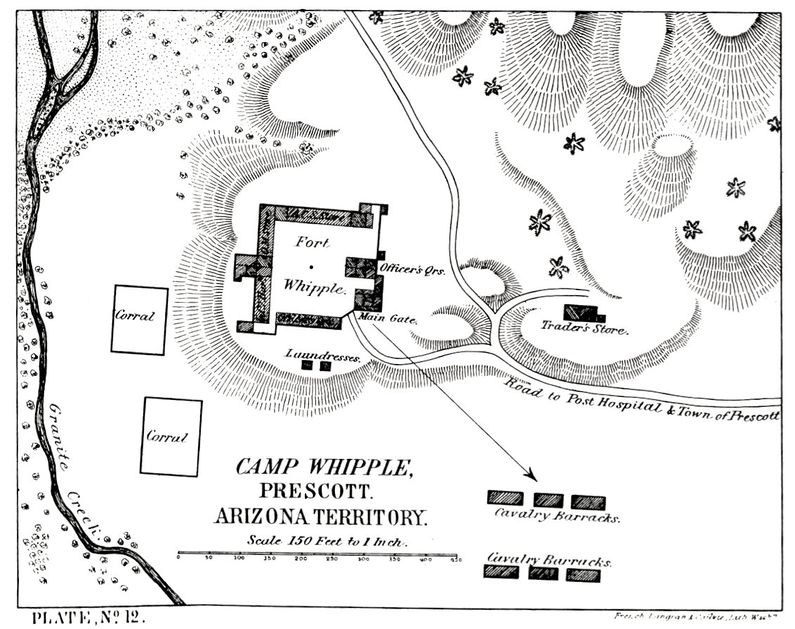 Notes: Post returns indicated that the post was established as Fort Whipple on 23 Dec 1863 by Major Edward B. Willis, 1st California Volunteer Infantry.