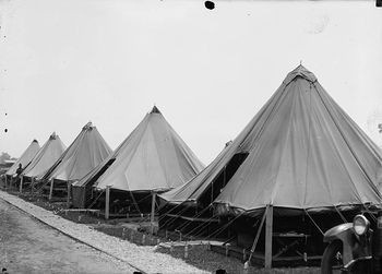 One of sixteen National Army Training Camps established in 1917 to train World War I draftees. Established on 18 Jul 1917 under the supervision of construction quartermaster Major Harry O. Williams. The camp was to have a capacity of 65,000 officers and enlisted men. The Camp was mostly complete in October 1917 at an eventual cost of $12,800,000.