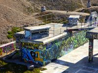 No guns or carriages in place. Covered with graffiti and trash, unprotected by the Los Angeles Unified School District who has possession of the property (2009). The graffiti and trash problem is significantly worse at the time of the 2014 visit. The school district is not maintaining the property and is actively preventing volunteers from cleaning it up. The battery now serves as a training ground for local taggers.