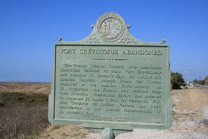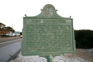 Fort Crevecoeur (1) HistoryThe fort was built as a stockaded compound with four bastions and garrisoned by 50 men. The site was occupied by the French in late 1717 and the work was reported complete 12 May 1718. The French had evacuated the fort by 20 Aug 1718 to avoid conflict with the Spanish and the Spanish then garrisoned it with one officer and 12 men. The fort was variously abandoned and garrisoned until 1722 when the Spanish finally abandoned the fort, dismantled it and shipped the materials to Pensacola. Current StatusMarker only.
