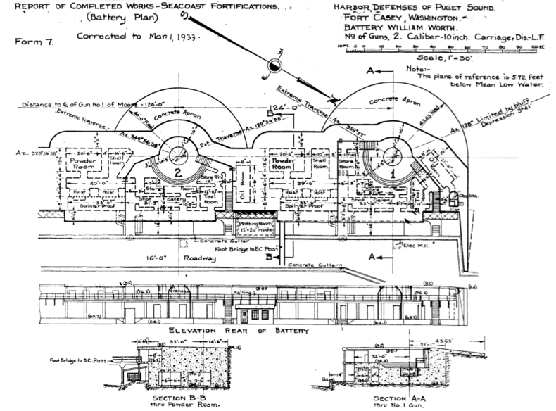 Battery Worth (1) (1902-1942) - Battery William Worth is a concrete Endicott Period Coastal Battery located on Fort Casey, Washington. Named in G.O. 20, 25 Jan 1906, after BG William S. Worth, who served with distinction during the U.S. Civil War and the Spanish-American War, and who died 16 Oct 1904. The Battery was begun in 1897 and completed in 1898 and transferred to the Coastal Artillery 16 Jun 1902 at a cost of $51,947. The battery was inactivated in 1942 during World War II.