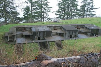 Endicott Period (1890-1910)Part of the Harbor Defense of the Columbia. A concrete Endicott Period battery that, along with Battery Smur, protected the Columbia River Minefield between Fort Columbia and Fort Stevens. The battery was armed with three 3-inch rapid fire rifles that sat on Masking Parapet mounts. The battery was active for only eighteen years.