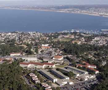 Active military reservation, home of the Defense Language Institute, Presidio of Monterey, Monterey County, California. Open access to historic sites and memorials area. Sloat Memorial and Father Junipero Serra Memorial.