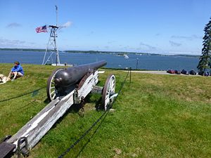 Fort Allen (2) (1775, 1814-1815) - A Revolutionary War fortification established in 1775 by patriot forces in Portland, Cumberland County, Maine. Named for Colonel Ethan Allen who captured Fort Ticonderoga in May 1775. Used as a hospital during the War of 1812 and abandoned in 1815. Also known as Fort Ethan Allen. Fort Allen (2) HistoryInitially built with five guns in a crescent shaped battery for the defense of Portland, Maine. It was later enlarged to include a barracks and magazine. In the War of 1812 parts of the fort were used as a hospital. Current StatusPart of Fort Allen City Park in Portland, Cumberland County, Maine. Two civil war era guns are emplaced on period earthworks.