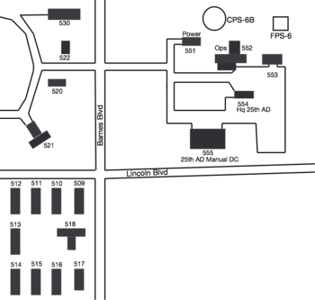 The physical plant of the site was divided into the main site, a cantonment area, and a radio site. The main site housed the operations buildings, the radar towers, and the backup generators. The cantonment area housed the enlisted barracks, the bachelor officer's quarters, the orderly room, the dining hall and other support buildings. A separate Ground to Air Transmitter/Receiver (GATR) radio site housed the radio equipment for directing aircraft intercepts. Adjacent to the radar operations area was the 25th Air Division manual control center.