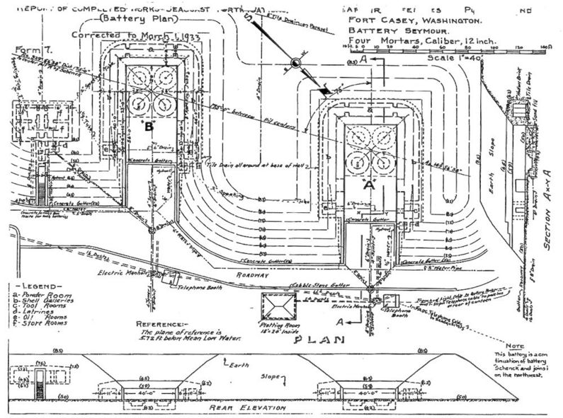 Battery Seymour (1899-1942) - Battery Truman Seymour is a concrete Endicott Period Battery located on Fort Casey, Washington. Named after Maj. Truman Seymour, 5th U.S. Artillery, bvt. Maj. Gen. USA, who rendered distinguished service in Mexican War and the U.S. Civil War, and died 30 Oct 1891 at Florence Italy. The Battery was begun in 1898, completed in 1899 and transferred to the Coastal Artillery for use 16 Jun 1902 at a total cost of $46,603.50. The mortars were dismounted in 1942 during World War II.