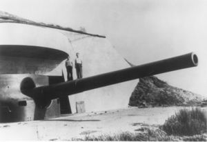 | Source: RCW Form1, 24 Nov 1944, CDSG, Berhow, Mark A. ed, American Seacoast Defenses: A Reference Guide, 2nd Edition, CDSG Press, McLean, VA, 2004, ISBN 0-9748167-0-1, pages 176-177 Note 1: Navy guns transferred 18 Apr 1943, mounted Mar 1944. CDSG Gun Card Collection from NARA | |||||||||