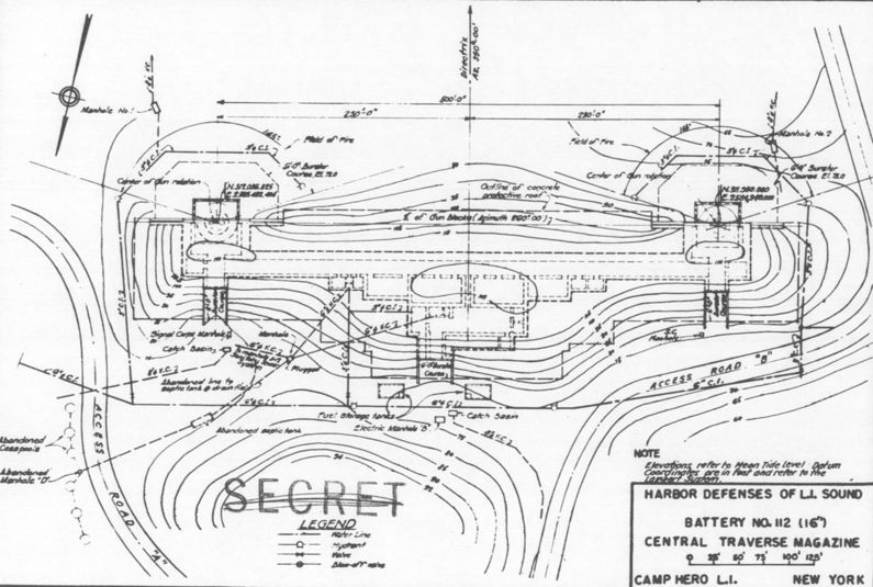 Battery 112 (1944-1948) - Battery 112 was a reinforced concrete, World War II 16 inch coastal gun battery on Camp Hero, Montauk Point, Suffolk County, New York. Renamed Battery Dunn in 1942. Battery construction started 23 Mar 1942, was completed on 5 Jun 1943 and transferred to the Coastal Artillery for use 12 Jan 1944 at a cost of $ 1,369,528.61. Deactivated in 1948.