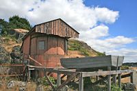 Searchlights were first installed at Fort Rodd Hill about 1902 and were meant to light up targets at night. There were two lights installed, No. 1 was on the west side of the point and No. 2 was located on the east side near the lighthouse. The No. 1 light was a narrow beam with a range of about 5000 yards while the No. 2 light was a wide beam with a range of about 2000 yards. The searchlight system was updated during World War II with modern 60" searchlights. Two of the searchlight shelters still exist, one disguised as a boathouse..