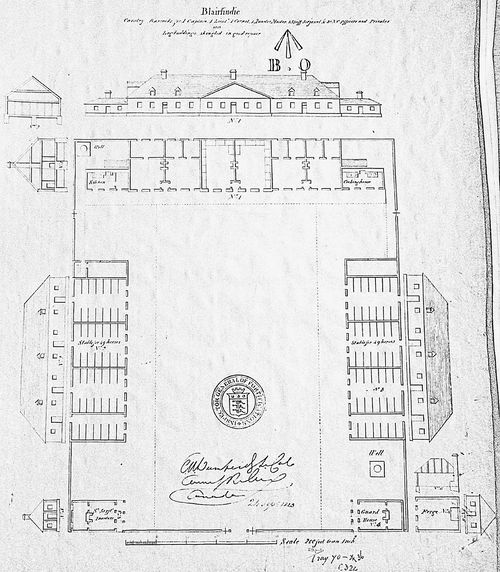 Barrack at Blairfindie (1814-1836) - A British Colonial cavalry barrack established in 1814 in present day St-Jean-sur-Richelieu, Quebec, Canada. The barrack was abandoned in 1820 and sold in 1836. It was also named Halfway House, like the camp on the same site.
