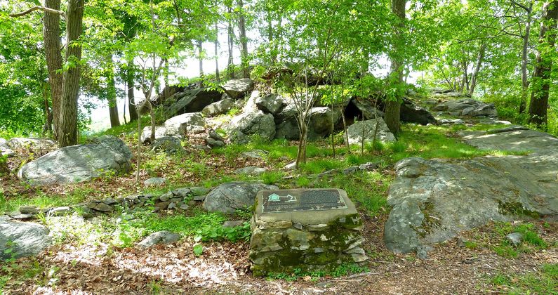 Romans Blockhouse - Constitution Island (1779-1783) - A Patriot Revolutionary War Blockhouse established in 1779 on Constitution Island in Putnam County, New York. Named after engineer Bernard Romans. Abandoned at the end of the war in 1783. HistoryPart of Fortress West Point. Established as an octagonal(round), blockhouse in October 1775 by engineer Bernard Romans, completed on 11 Nov 1775. The blockhouse was located on knoll at what was to be the center of Fort Constitution Grand Bastion. Romans Blockhouse and Romans Battery were the only two components completed. The blockhouse was thirty feet in diameter and the upper story was armed with eight 4-pounders cannons. Lord Stirling described the blockhouse as "a log house or tower on the highest cliff, near the water, mounted with 8 cannons, pointed out of the garret windows, and looks very picturesque." The blockhouse was destroyed by the British during their 20 day occupation in October 1777. Current StatusArcheological remains and a marker at the site.